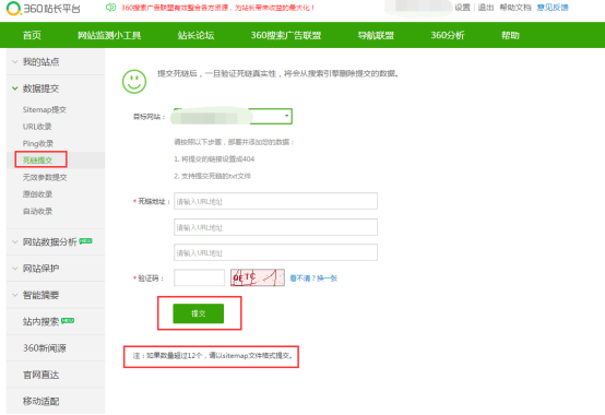 (2)被黑站點恢復正常后產生的舊網頁或死鏈,請通過360搜索站長平臺提交死鏈刪除申請。